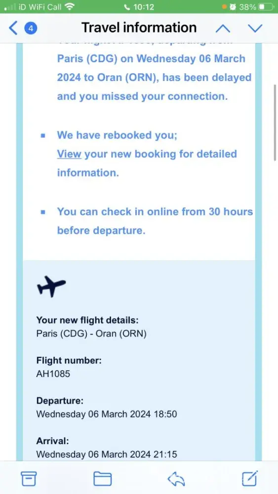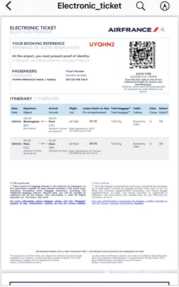 I am Mrs Dalila Mekhaldi from the UK, l am the daughter of Mrs Fatma Mekhaldi who traveled today 6/3/24 via Paris CDG airport from Birmingham (Uk) to Oran (Algeria).