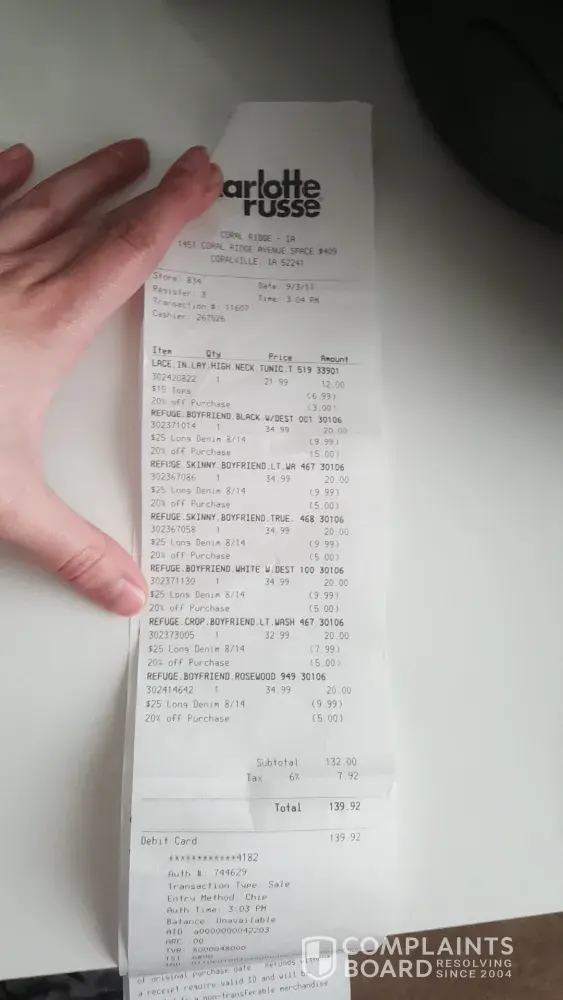 63 Charlotte Russe Complaints