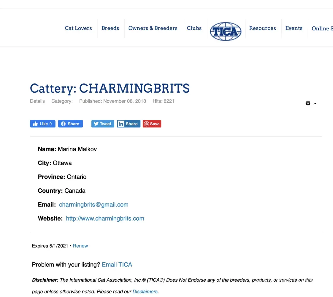However, the evil breeder is registered in tica (the international cat association) and cca (canadian cat association)!
