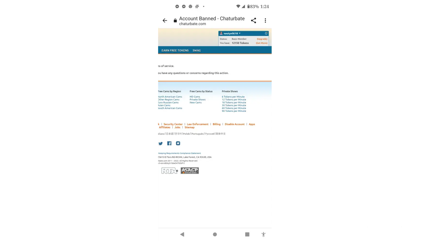 Chaturbate address23615 El Toro Rd â„– X344, Lake Forest, California, 92630, United States