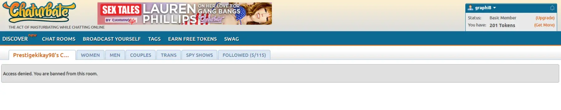 I was charged 200 tokens for a password show and then I was banned from the room for no reason.