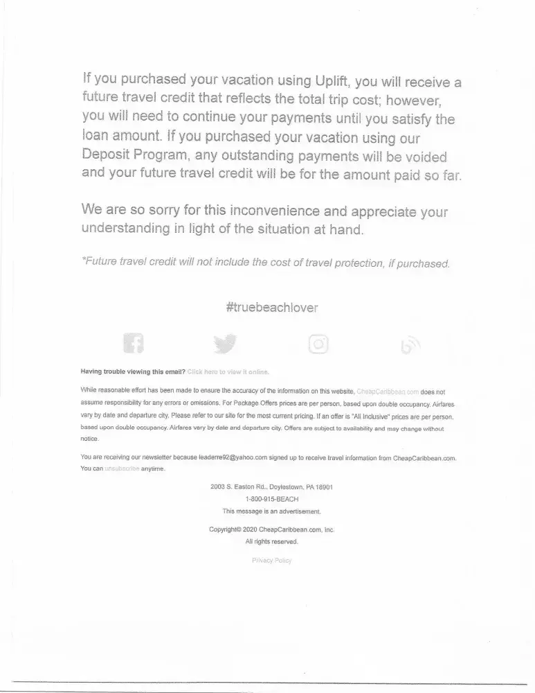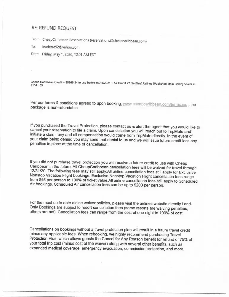 Cheap Caribbean Request a refund - trip cancelation due to covid