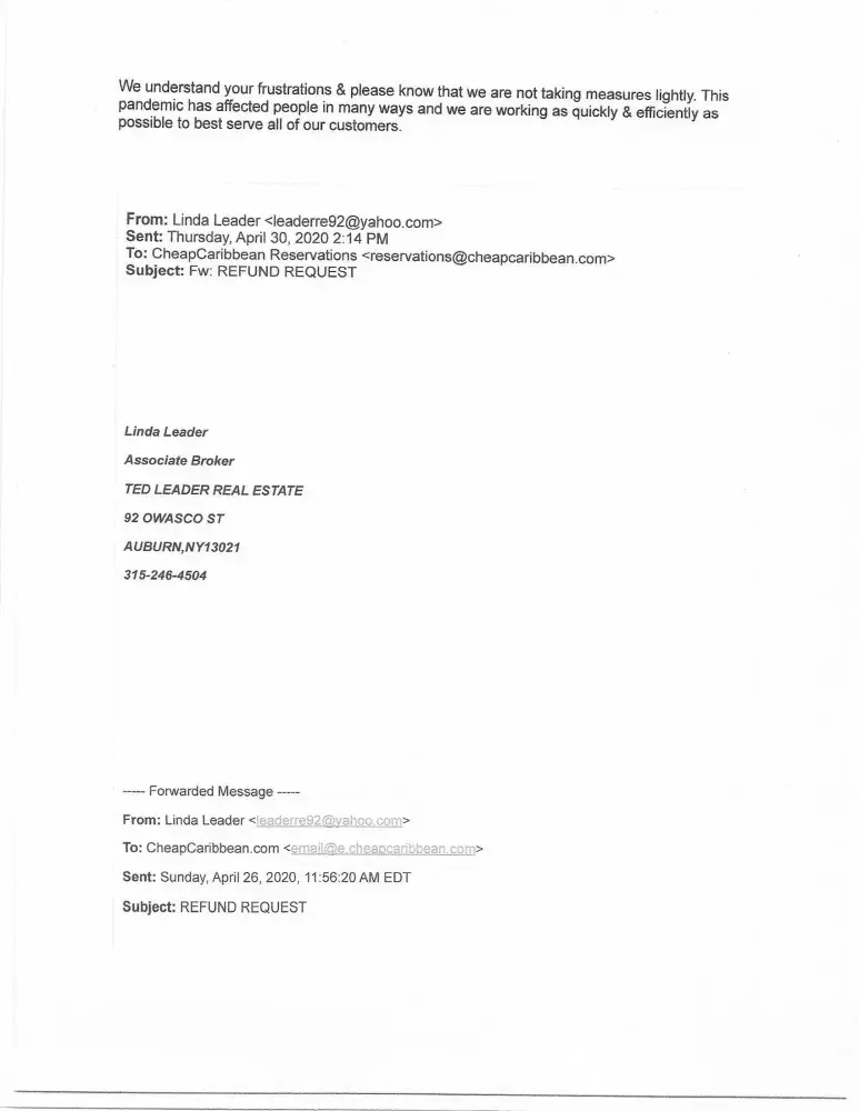 We have called every number and Corporate to try to remedy this and fine someone at CHEAPCaribbean that will do the right thing. We never get call backs and/or we get hung up on. We are beyond frustrated and disappointed and just plain disgusted by the lack of empathy this company is showing their consumers during a very unpredictable and difficult time for the world.
