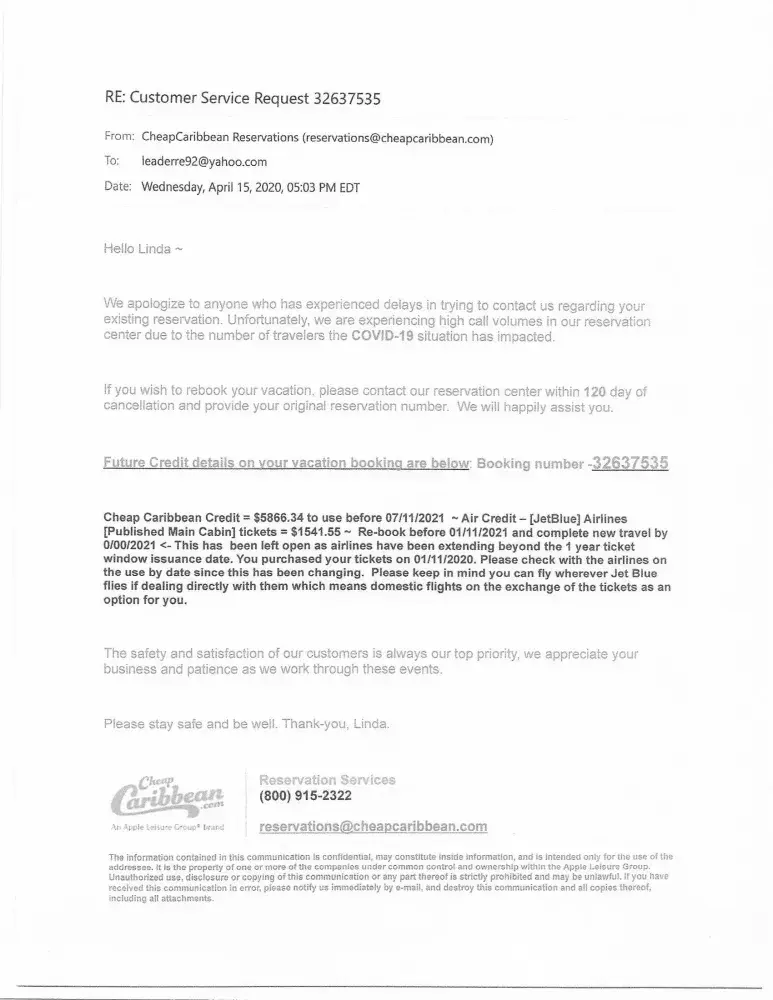 I have spent hours emailing and waiting on hold with cheap caribbean. It is now less than 48 hours until I am supposed to leave and my credit has not been applied so I do not have my official itinerary.