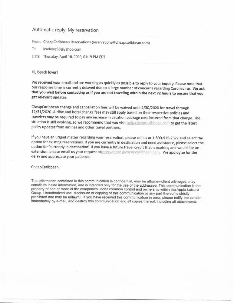 Cheap Caribbean has left an official reply on this complaint.
