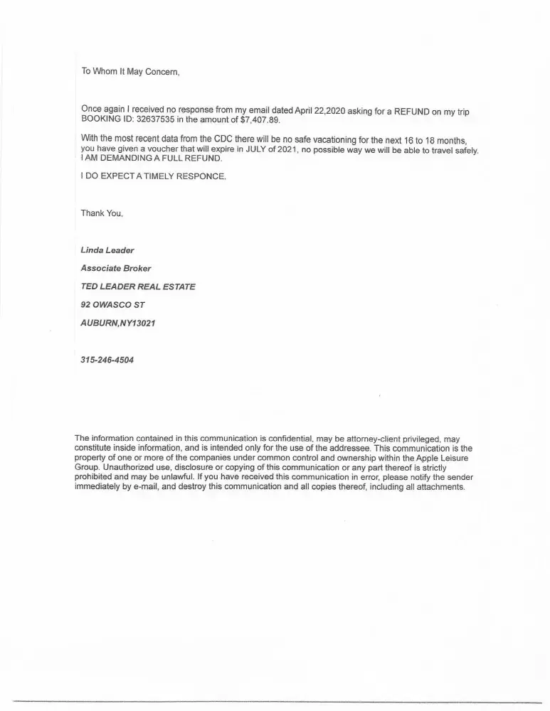 Desired outcome: A refund and or my vacation