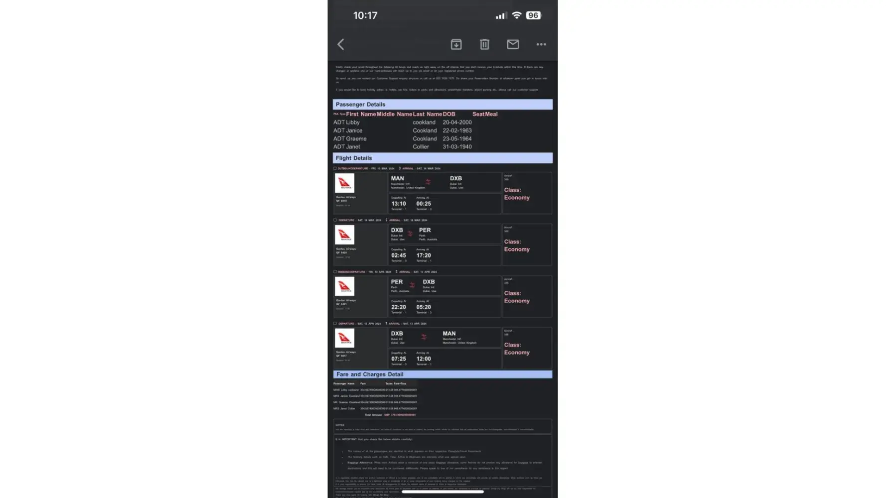 I booked 4 adult flights from Manchester 15th march to perth returning 12th April. I git the confirmation through and was awaiting my etickets. These were booked in good faith. I booked flights and checked the baggage allowance with the airline as footnote advised. Good...thus wasc21st October on 24th October evening I had a call tell me the flights are not...