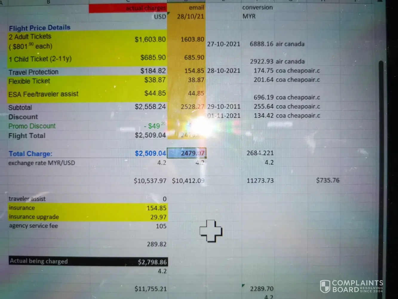 There are unauthorised transaction of insurance of USD154.85 and insurance upgrade of USD29.97 and agency fee of USD105.