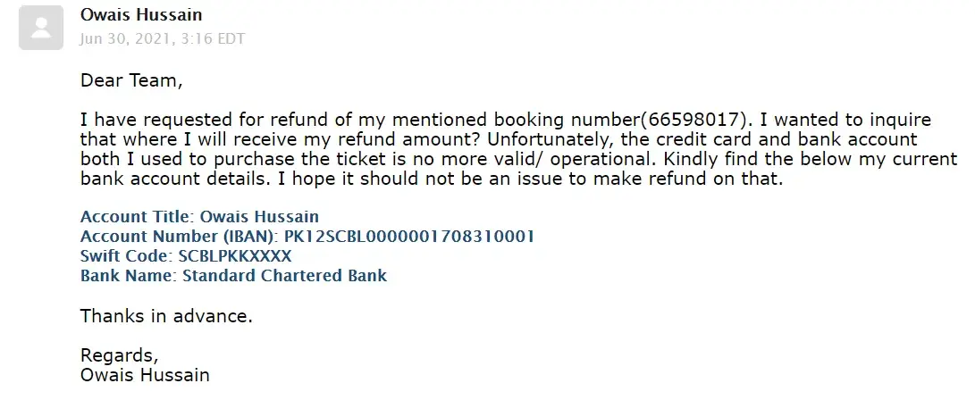 I have requested for refund of my mentioned booking number ([protected]). I purchased the ticket last year and due to COVID-19 was unable to travel. Finally, I received an email for refund eligibility and I requested it. Unfortunately, the credit card I used to purchase the ticket is no more valid/ operational as I moved out from that country (Oman). I requested the customer support and billing team to process the refund on my current bank account but they refused and asked me to check with the bank or Air Canada. When I checked with Air Canada they told me CheapOair should process the refund on your account as they have charged you not AirCanada but, Cheapoair keeps telling me to check with the bank whereas, the bank states that credit card was closed for more than a year ago so kindly ask the merchant to route your payment to your bank account.