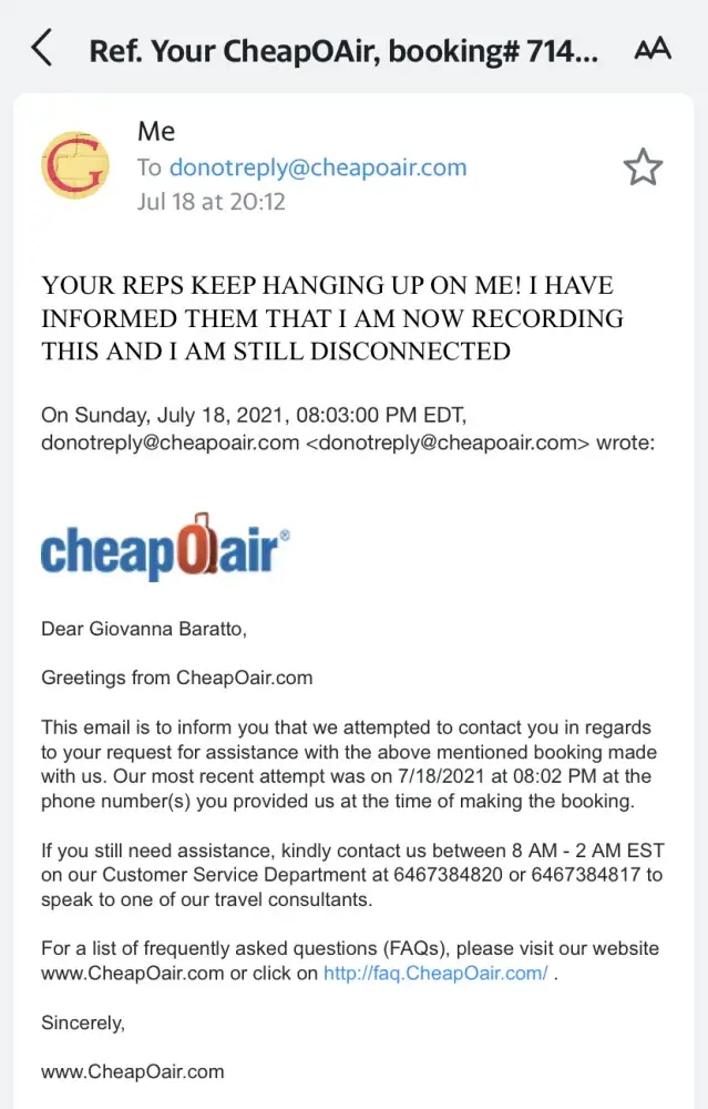 Now my family are booked to travel back without me and I will have to pay those cheapoair $4000 for their agents' laziness and misinformation.