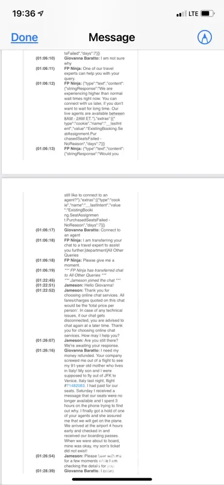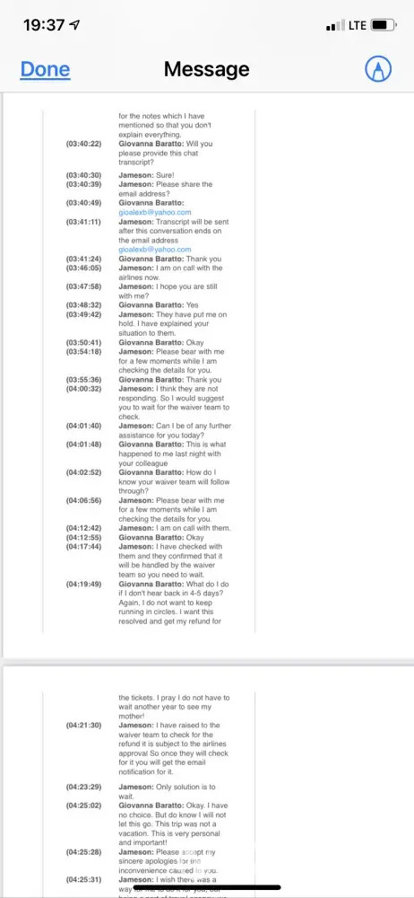 Initially, my son and I were to travel September 7th; however, as a Respiratory Therapist I have first-hand knowledge of the severity of this Delta Variant. I exercised my right to one change in the flight schedule per Alitalia protocol. I literally spent 4 ½ hours on the phone and had to go through 8 different agents before I could finally reach one who would help me. Your agents would either put me on hold indefinitely or literally hang up on me. I reached a point where I was begging them to please not hang up on me - and they did anyway. By the 5th agent I began to inform them that our calls were being recorded but nothing changed. I am more than happy to share these recordings with you in addition to supporting documentation. This forum only has a link to download photos and videos.