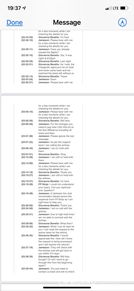 The following morning, Tuesday August 10th, I started a chat discourse on the CheapoAir website. I did this instead of a call because I wanted everything in writing. The chat lasted approximately 3 ½ hours with no resolution. Once again, I was asked why I did not get on the flight - and once again I asked, "Would you leave your son behind?!" At least this agent agreed that he would not. The agent was not able to reach anyone from Delta Airlines so he said that the CheapoAir Waiver Team would contact me in 3 - 5 business days.