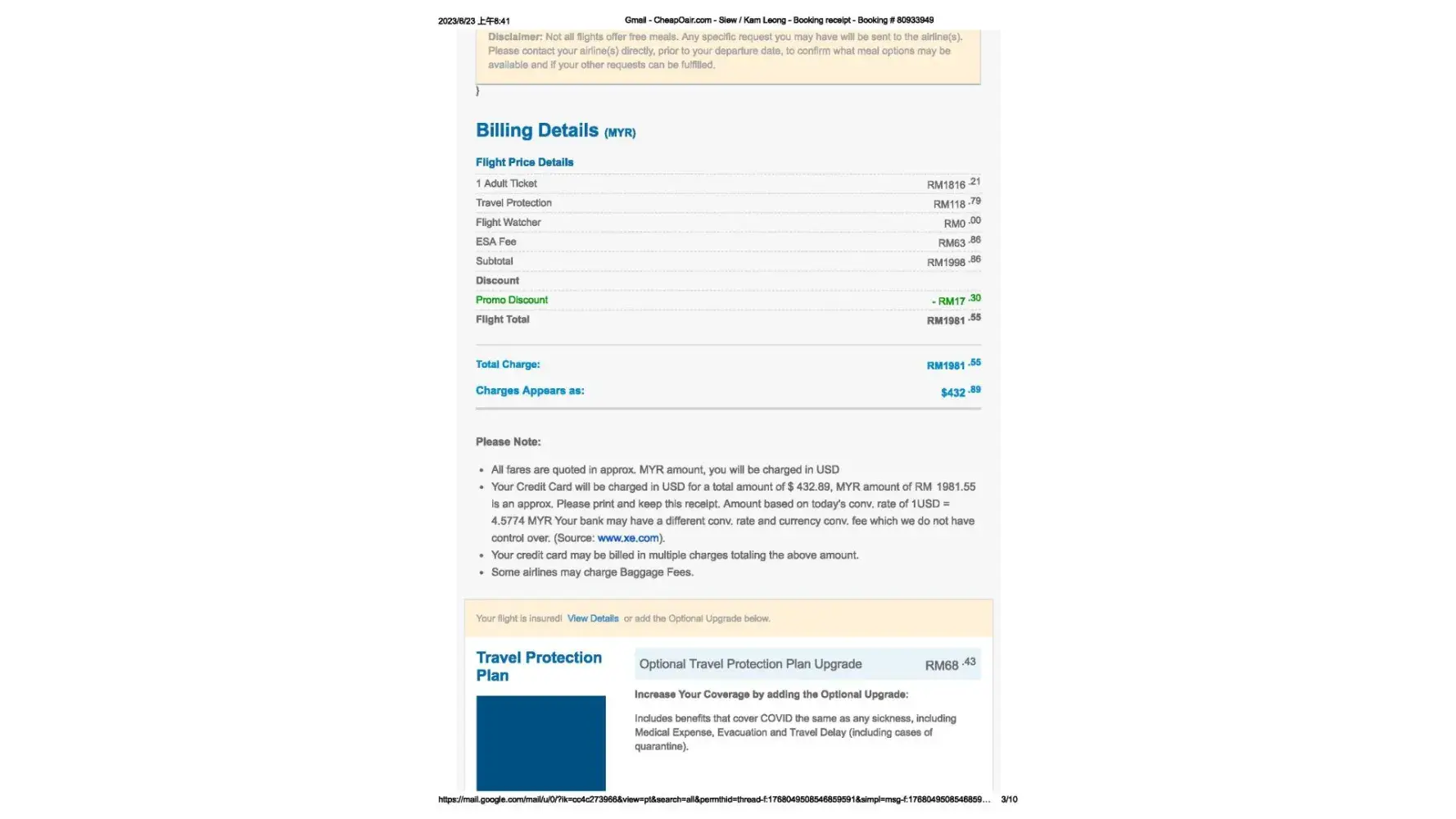 Original schedule Departure-Return flight is: MNL-KUL, 08-Jun to 18-Jun-2023, i revised the return flight schedule to Manila from 18-Jun to 13-Jun-2023, the total charge amount is USD 523.14, but i received my credit card showing that it was happen seriously over charge by Cheoair (USD 39.90+392.99+90.25+215.82+177.17=916.13), it is not fair and bid mistake.
