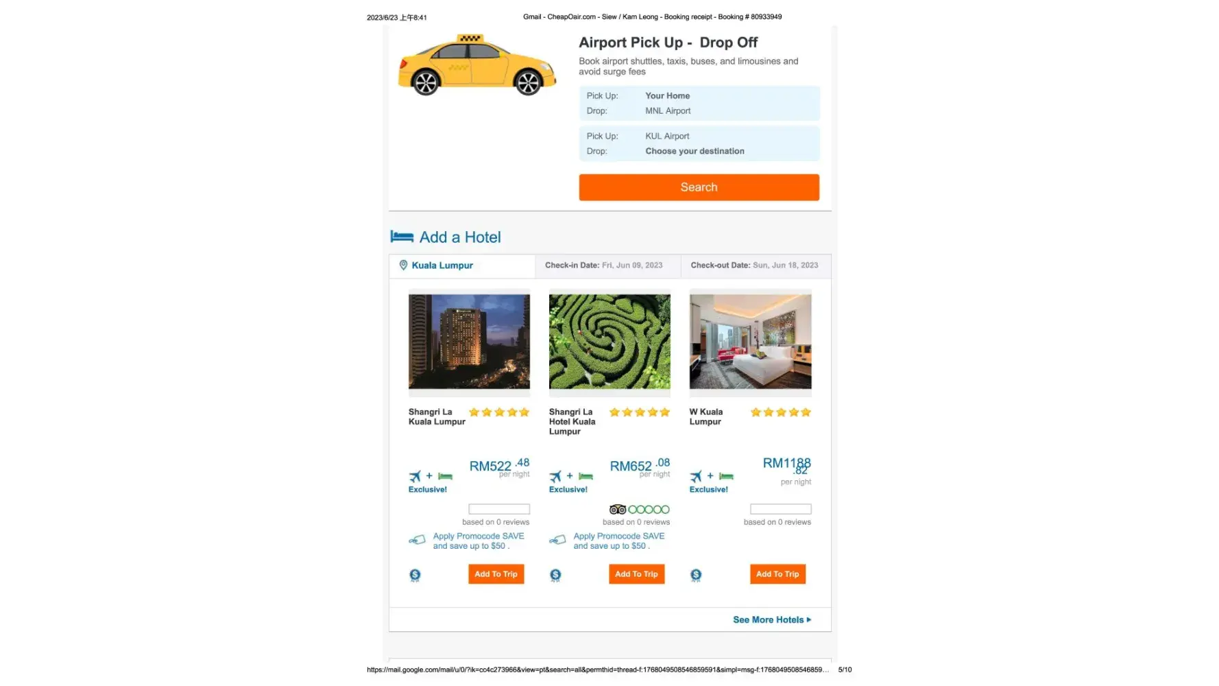 I have booking my flight from Manila to Kuala Lumpur as below: