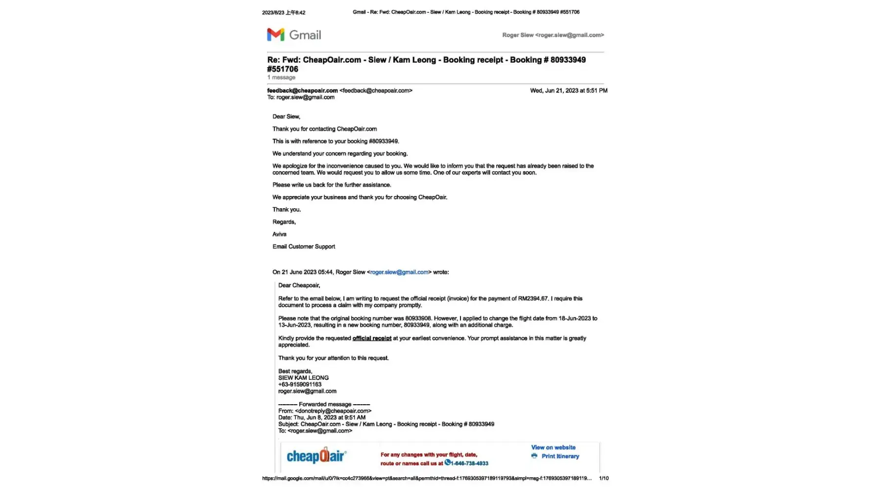 CheapOair promised to review within 10 days and get back to me, till now 20 days passed and still no positive reply