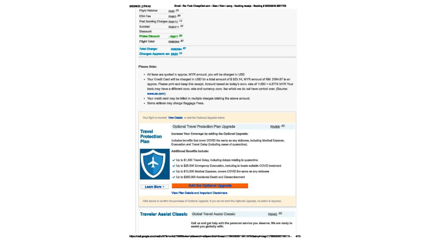 After two weeks, when looking at my credit card statement, I discovered that I was charged twice for the same purpose (same passenger travelling the same route). I contact again cheaoair call center and they said they will study my case and get back to me in 10 days. Which they have not yet. This is an abuse of consumer rights, it turns out the e-mail was inputted wrong, and no e-mail was delivered to me, the e-mails they claim to have sent both bounced back, knowing that my correct e-mail is on file with them as I always book my flights online with them.
