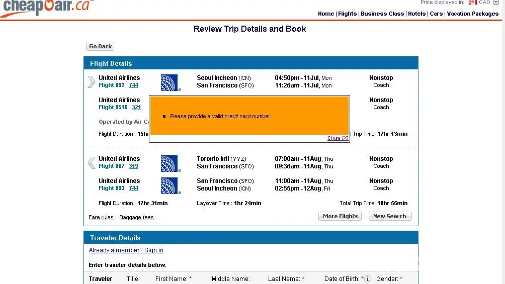 I suspect www.cheapoair.ca/com uses bait & switch in their pricing policy. Here's my story: