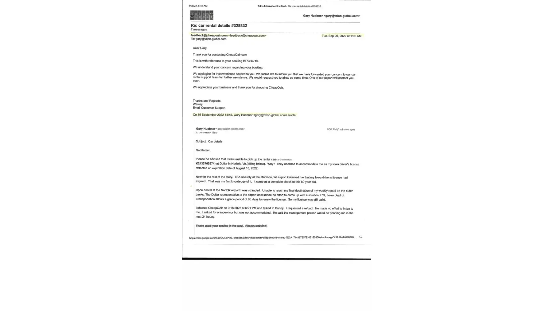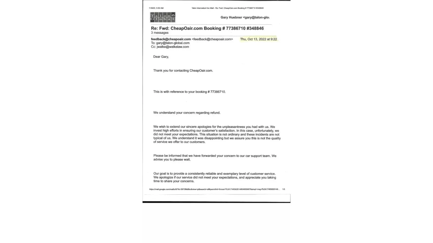 That was what was in the body of the email along with the reason from Frontier that they needed and all attached invoices they require. I received my hotel money back and my car rental money back - just need my airline ticket money back and also this trip did have travel insurance that was paid in the amount of $102.35. My Cheapo Air booking # was [protected] - Please help! I am so mad - I have reached out to Channel 6 news, an agency to advocate on my behalf to go public, the US Dept of Transportation and numerous phone calls and emails back and forth.