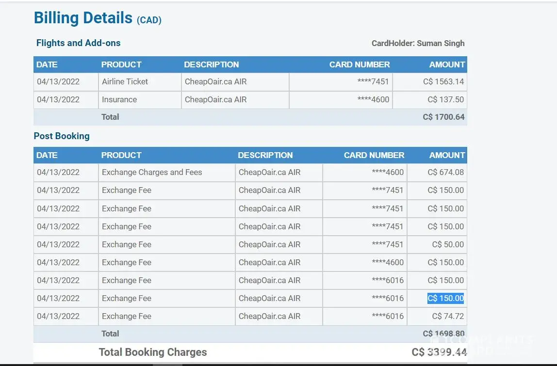 Cheapoair with withholding an $104.10 fee plus charged me $89.84