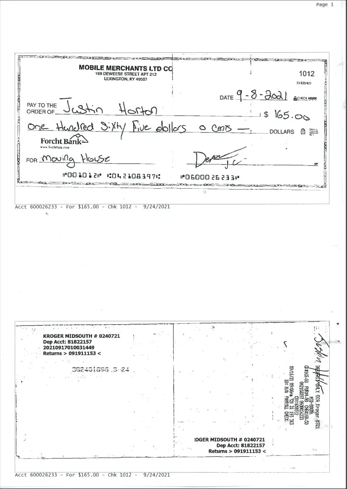 I received a notice from kroger check recovery center...stating that check #1499 had been returned, we paid this check
