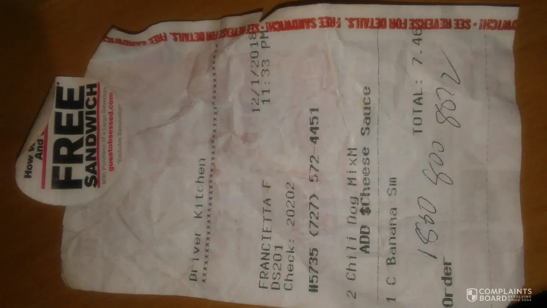 Yesterday night we ordered two big Beauford meals, both with bacon (we were told was an extra charge), along with two cokes. After getting home, we realized they did not give us our drinks and neither burgers had bacon. We were charged $23 and paid full in cash. They did not give a receipt. When we called back to rectify the order, no one answered the...
