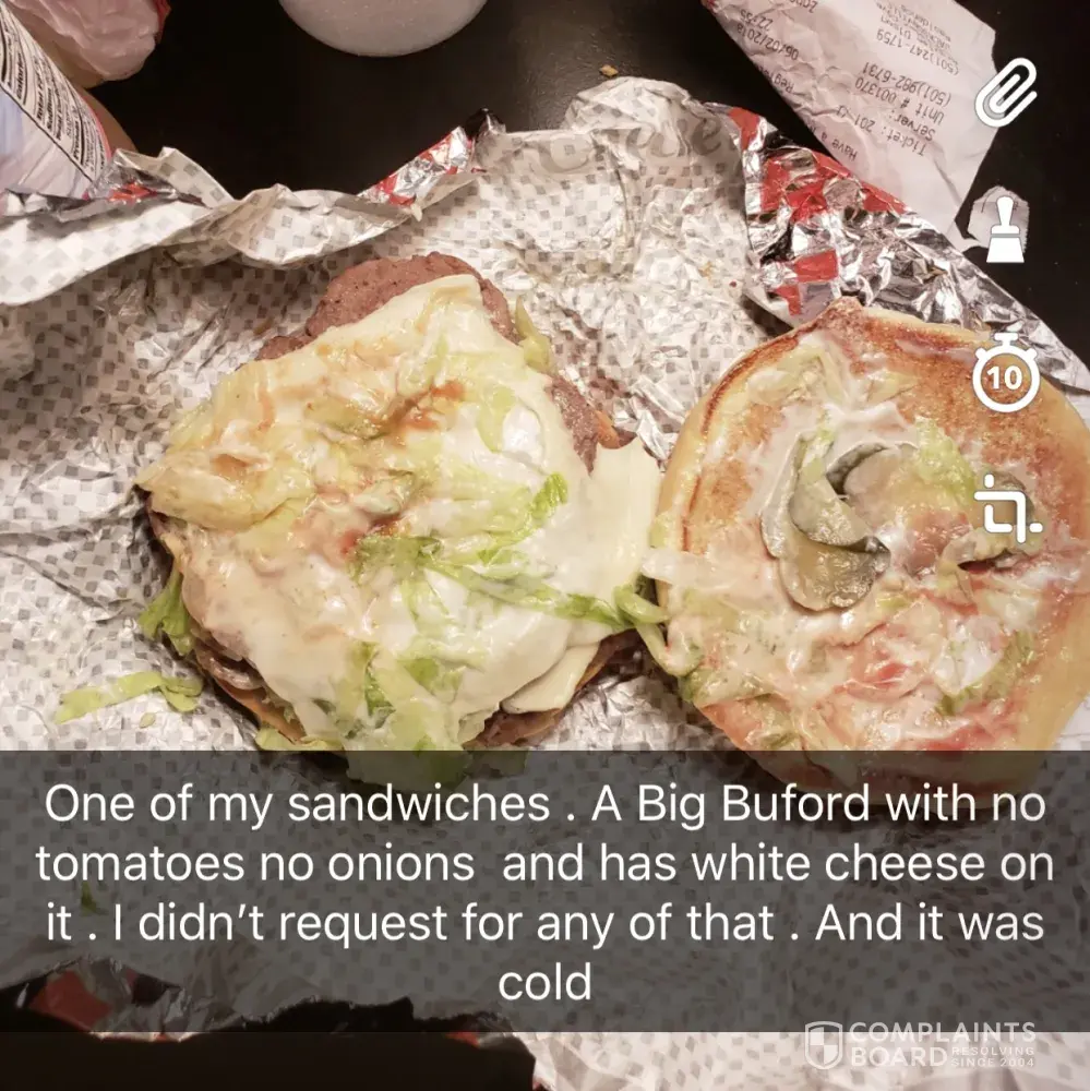 Hi my name is Jessy. I visited your Anrnold MO 63010, on June 4th @ 8:41pm. We ordered 2 of the $4.00 meals, rally cheese burger, Ice cream cone, and a Large water. When I got home I opened up the food to separte the food. When opening the burger and chicken sandwich I came across that one of the burgers were wrong and the other was completly missing the hamburger patty. I called up and talked to the manger on duty that night I explained to him our issues and he said "this is a joke, your kidding me right. I said "no!" He said just come back thur the drive through and let let them know and we will remake your food. I informed him that i lived in south county and was no coming back tonight becasue of my drive. His response was oh [censored] that far. Yes he said the word [censored]. So he said can you hold please, gets back on the phone and says keep your receipt and when ever you come back we will just replace your whole order. So tonight 6/12 @ about 8:40-9:00 I go through drive thru and inform them on what the manager told me the other night. She ask me for my name and then asked if i ordered a chili dog plus some. I said no. told her that the guy just told me to bring back my reciept and that they would replaced the whole meal. With attitude she replys do you have your receipt? I said yes. She siad to just pull forward to the window. ( remind you she does not know our order on what needs to be replaced and there was 3 people infront of me) I get to the window and she siad so were just replacing the the rally burger? I said No he said they were going to replace the whole thing. After having to yell through the window to let the lady know the order that is holding our receipt, Sarah at the window asked to pull forward and thy would bring our food out that they are going to cook it fresh. So she gives us 2 of the 3 drinks, we pull forward. This guy brings out our food finally 15mins from the drive thru line and gives me this blank stare hands me the bag of food and leaves without out saying one word. Yet they still shorted me my food. I going through the rest of the food and say it looks right ( the food that we got) but when I go to eat my burger its cold and along with the apple pies. I shouldnt have to wait for food for them to make it fresh if its going to come out to me cold. Very disappointed!