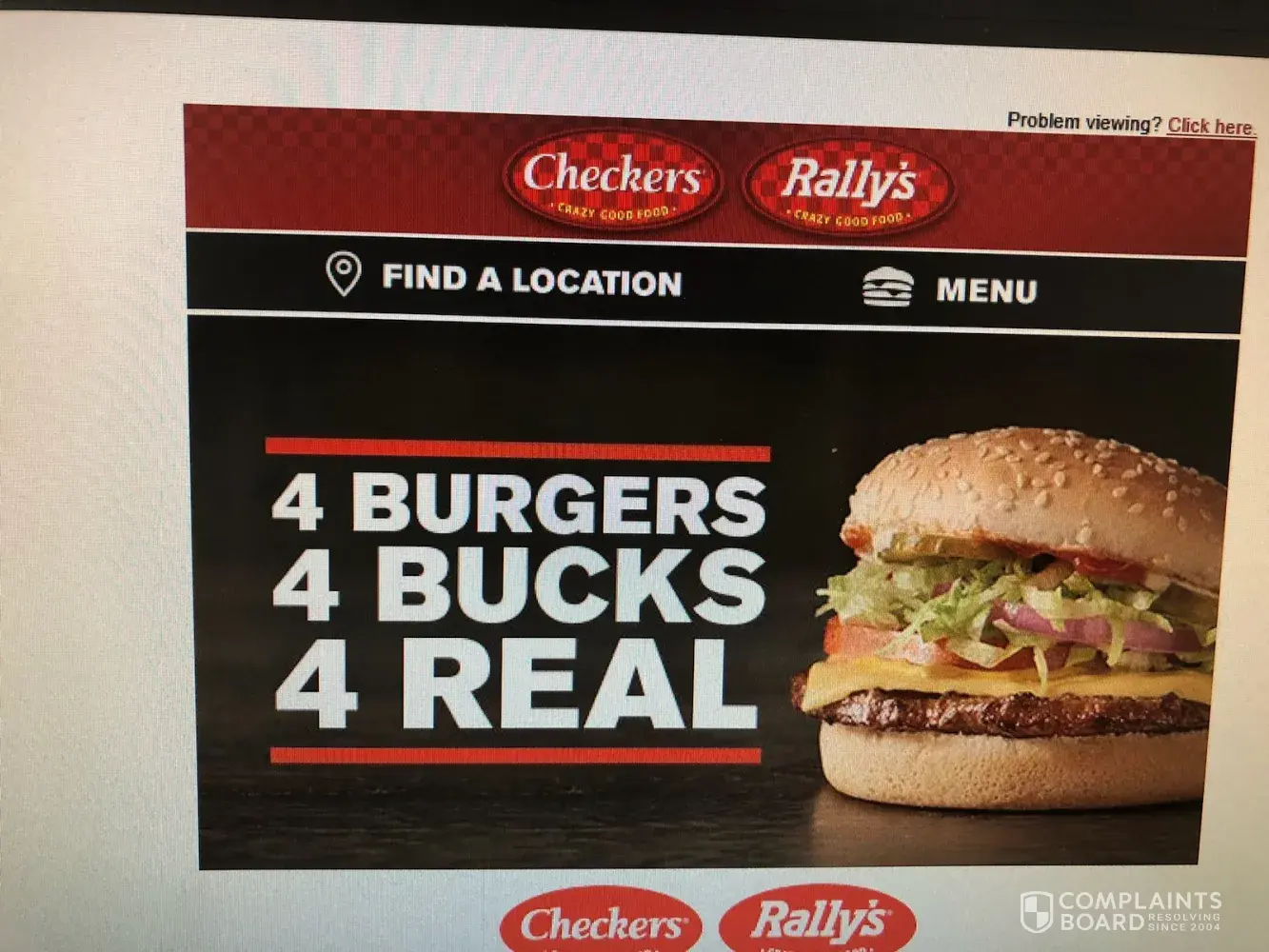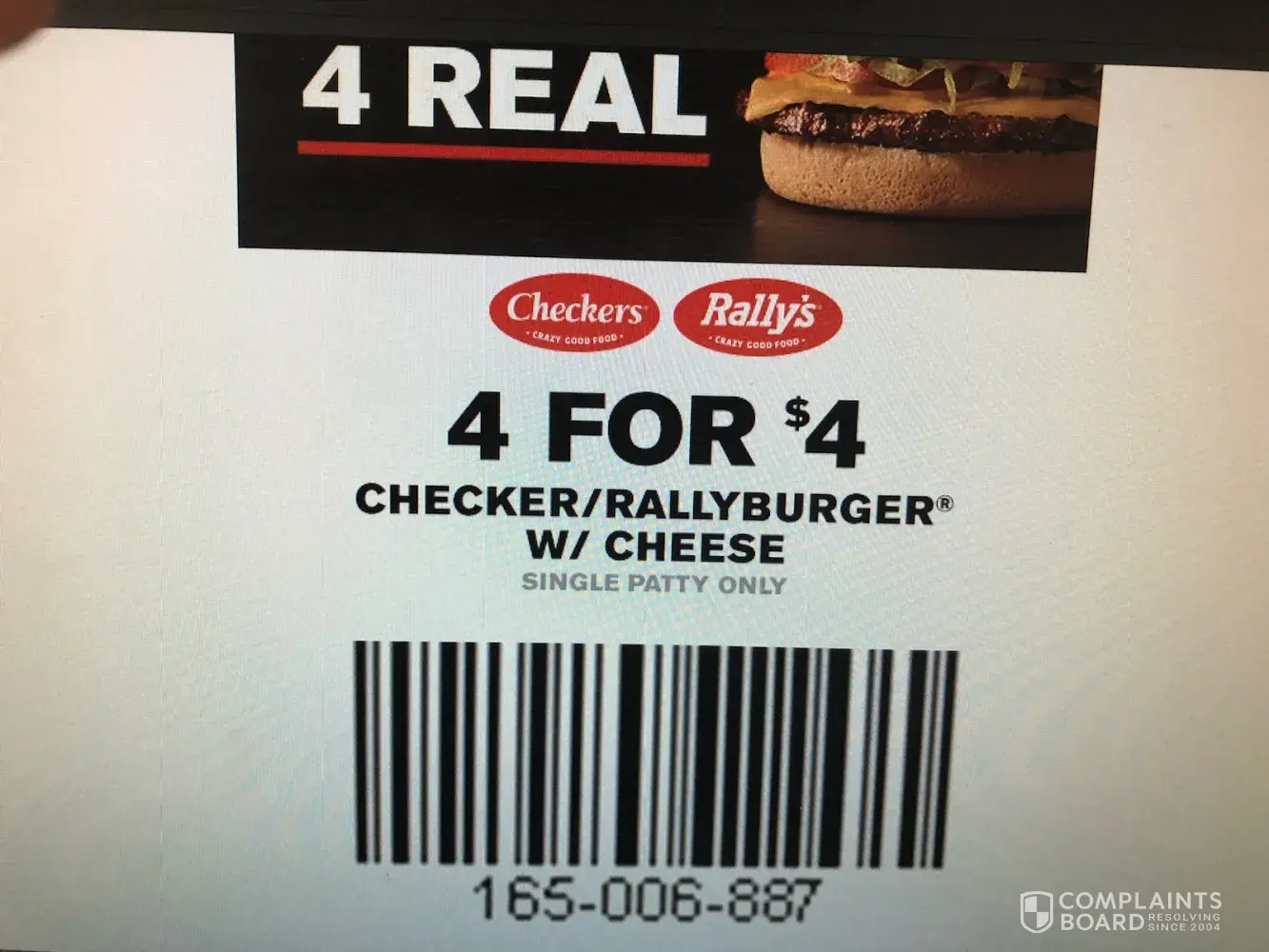 I received a coupon for "4 burgers 4 bucks 4 real". The subject line of the email specifically says "did someone say $1 burgers? Score 4 for $4 on your next visit. When I went to the store for the offer, I was denied the service as I was told the coupon was for $4 meals that included burger, fries, drink and apple pie. This is not the coupon I received in my email and presented to the store.