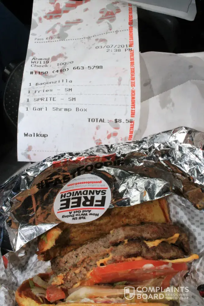 3/7/18 I ordered a Baconzilla at the walk up window I had a coupon if you buy the baconzilla you got fries & drink free. When I got home and open the bag then sandwich there was no bacon what so ever ' only a double cheeseburger. I live 26 some miles away, and I was not going back. this is the number on the order slip WU119. I only get to go to Checker every 3 or 4 month when I go in town. I Live in Lineboro MD.