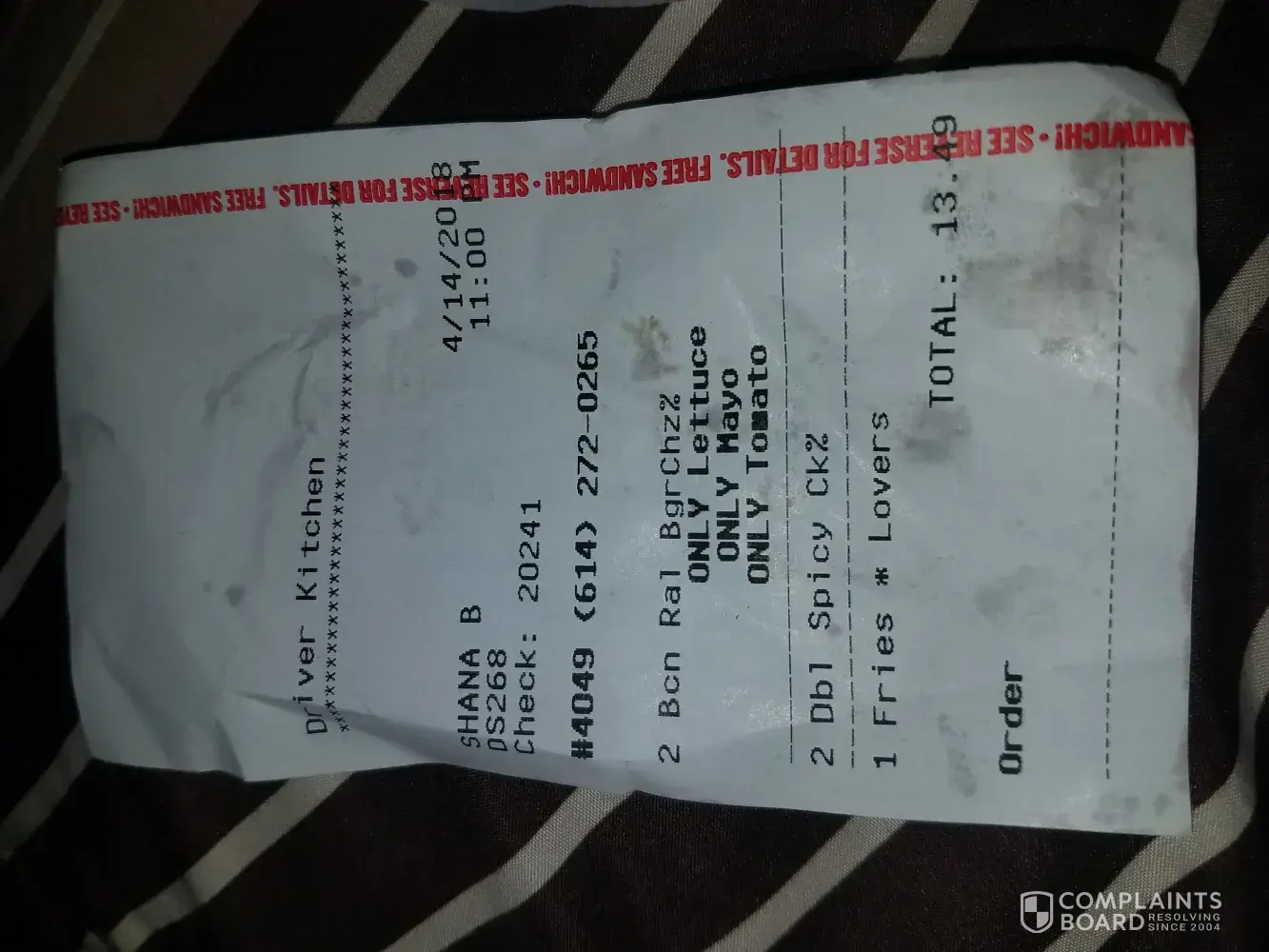 I love the chicken sandwich but you done away with it. I ordered a bacon cheeseburger and it didn't have bacon on it. I tried calling the store no one answered. Every time we eat there, there is always something wrong with the food. My check # 20241, Shana B, DS268, Rally's on Georgesville Road Columbus Ohio 43228 it was on April 14th 2018 at 11 at night.