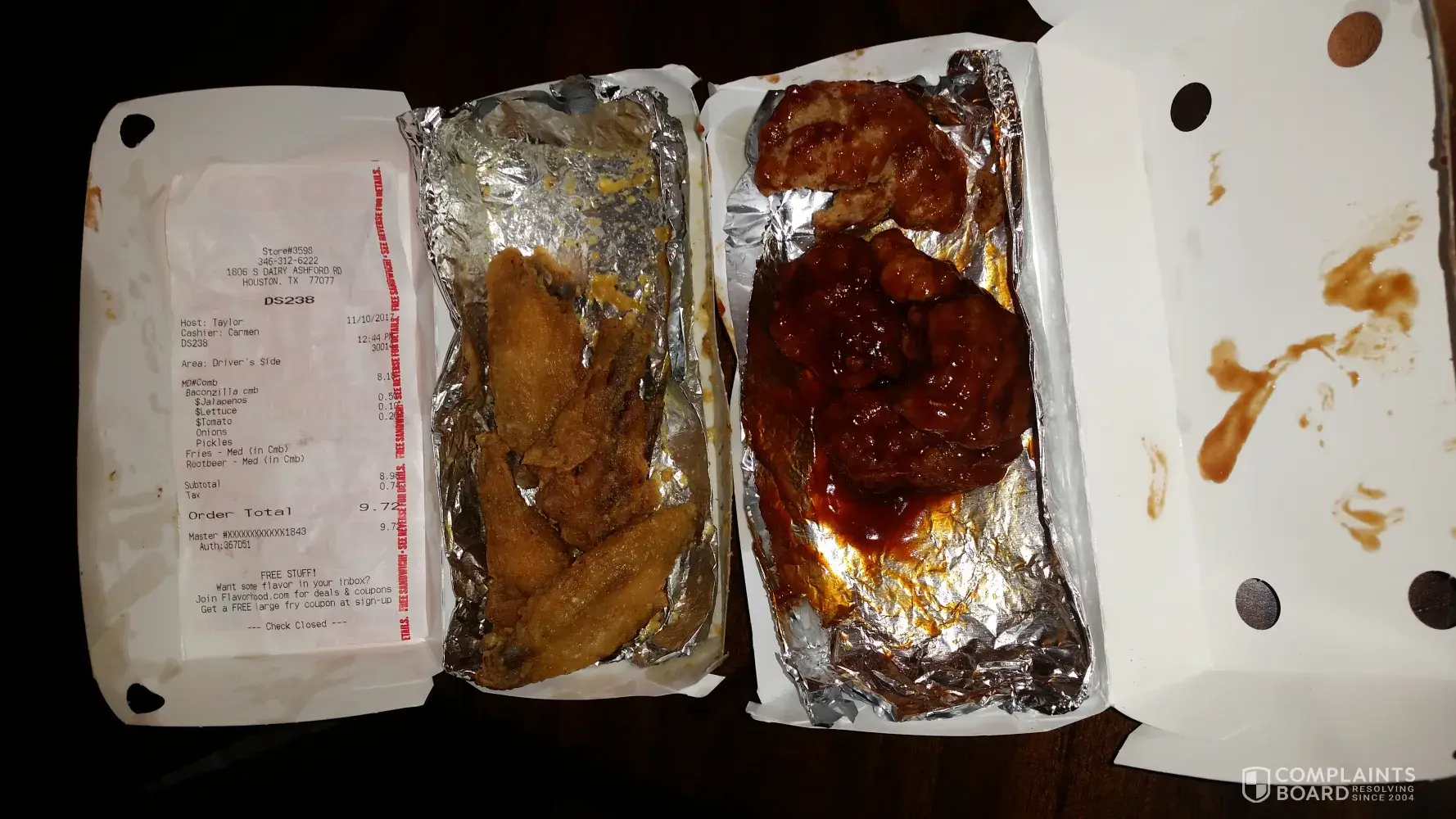 Today 11-10-2017 I stopped in at store #3598 for lunch around 1 p.m. and ordered the #2 combo and I added extras to the Baconzilla. The issue with order was i got everything I asked for but the burger was cold from the drive thru and I live less than 5 minutes away from the store. I was disappointed and didn't finish my burger. So I returned back to the same store #3598 to order two 5 piece wing only boneless honey bbq and 5piece traditional garlic parmisan and it was warm but extremely hard and crunchy. My wife and 10 year old son did not care to eat anymore of the wings after the first bite. It was a total waist of the franchise time and money for 1 and 2nd it was a total waist of my money and time. This store #3598 has a really good reputation and thats why I'm sending this email. Rally's in Kenner, LA on Layola St. food and service is so exceptional, always hot and fresh and the customer service is great at both stores.