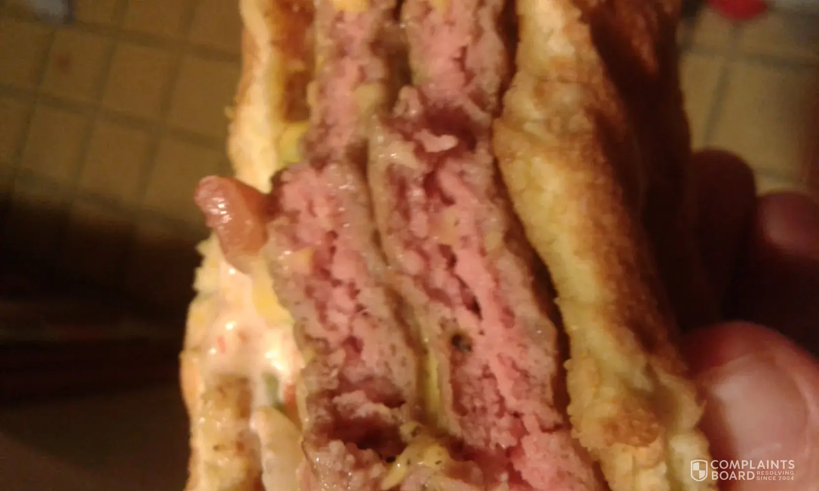 My mom brought me a sandwich for lunch and it was really under cooked. I took a bite and looked down and it made me sick. I called the store and all they can do for me since they didn't give my mom a recipt is give me another sandwich. NO THANKS. And now even with a picture they still can't do anything? This makes NO SENSE. I work in fast food as well and would never treat a guest like this.