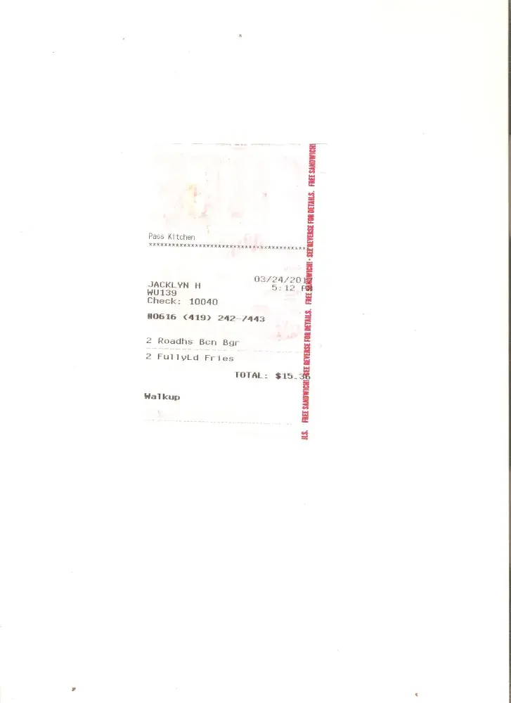 By this time there were about five cars behind me. The man directly behind me started honking and yelling. The woman ahead of me put her hand out of her car window and shrugged. Another five or so minutes went by. Finally I got up to the window to pay for my food. I received my receipt which was time stamped 7:36 PM. Again I began the wait. All the while the man behind me kept honking and yelling intermittently.