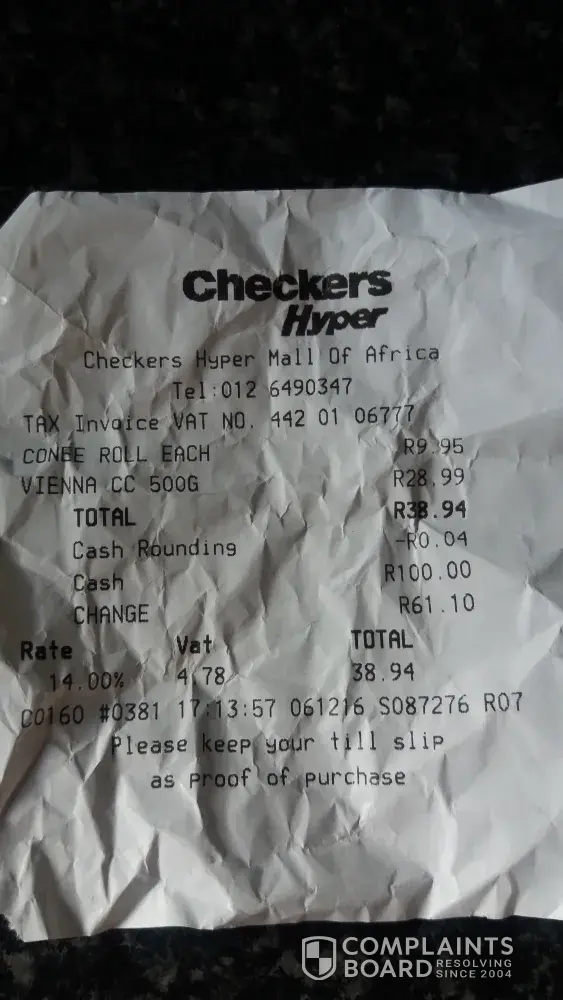 I used to be a loyal customer of pick n pay for years until a friend told me how great checkers is and i started doing my groceries at checkers but as it is im extremely disappointed and have a severe diarrhoea from the expired viennas i bought from checkers mall of africa.the sticker that shows the expiry is hidden and faint such tht one would never notice.i bought them yesterday 6 December and yet they expired on the 28th of November...This is unacceptable and very careless of the staff at checkers...