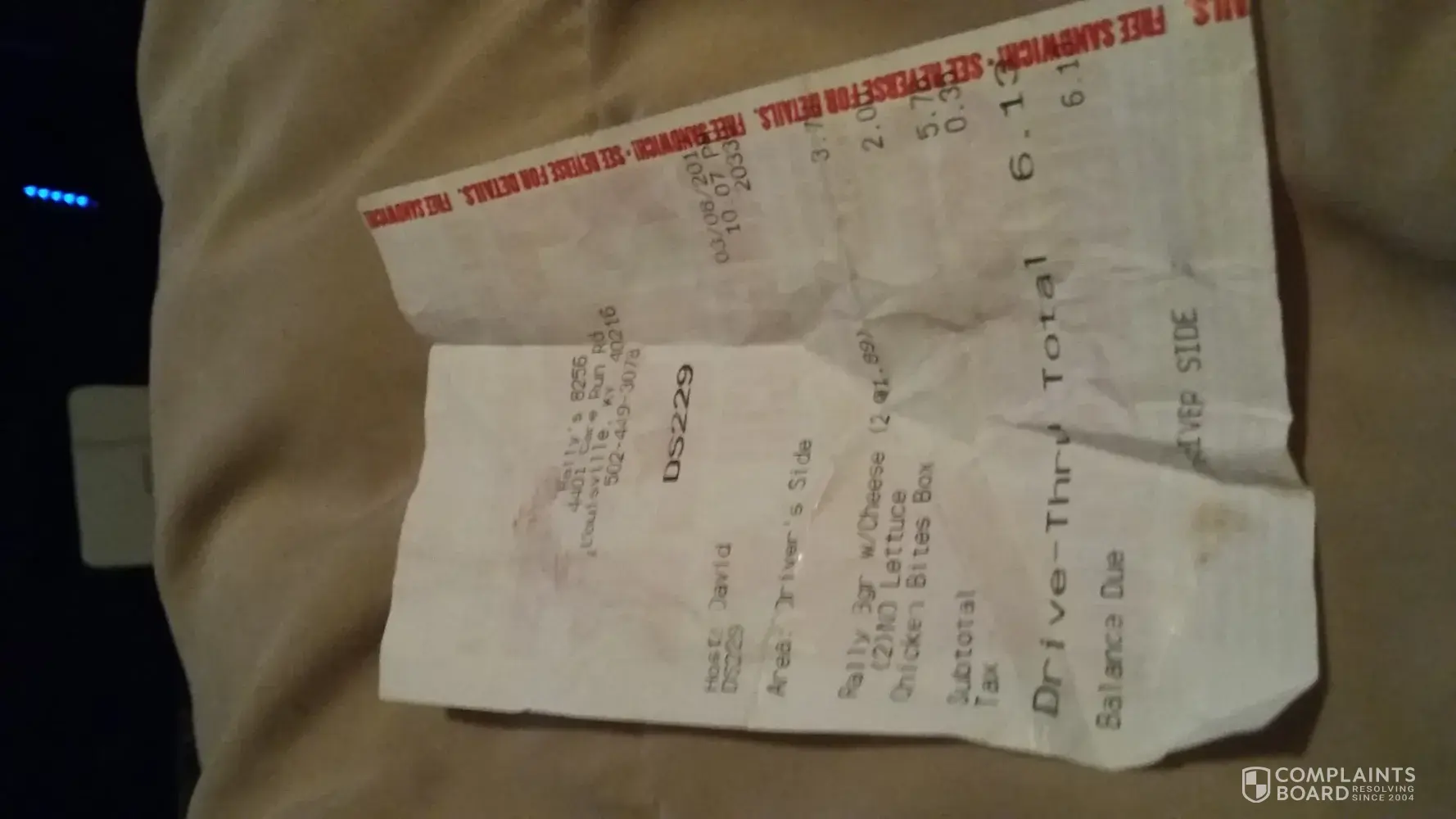 On the night of March 8th at 10:07 p.m. I went to your Rally's drive-thru on 4401 Cane Run Road Louisville Kentucky 40212 ordered to Rally's burgers with cheese no lettuce and no mayonnaise he gave me the burgers with mayonnaise on it with no lettuce didn't realize that it had mayonnaise on it till I bit into it but I was a half a mile away from the store didn't want to turn around so I took the burgers home and through them away and if he would have repeated the order back to me he would have got it right I can't stand mayonnaise and my chicken box was cold, the hostess name was David