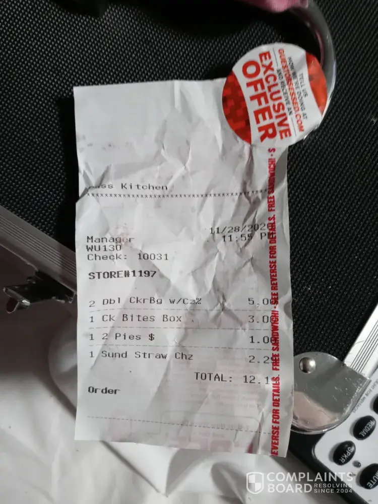 Read full complaintBad food! Staff lied about delay and refused to give refund.
