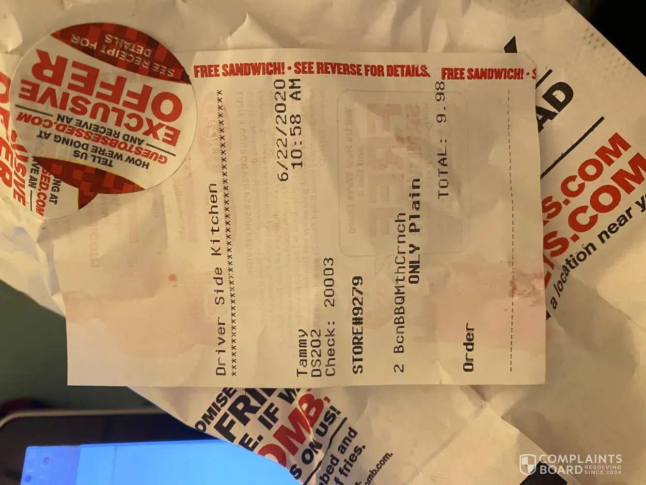 I places an order vÃa the drive thru at the Menphis, TN, Austin Peay location on today (08.05.2020). Everything was going fine until it was time to pay for my order. I places an order to deep sea fish sándwiches (2 for $5) and two regular fish sándwiches (2 for $3). Upon arriving at the window to pay my total was $10.73. I noticed from my receipt I wa...