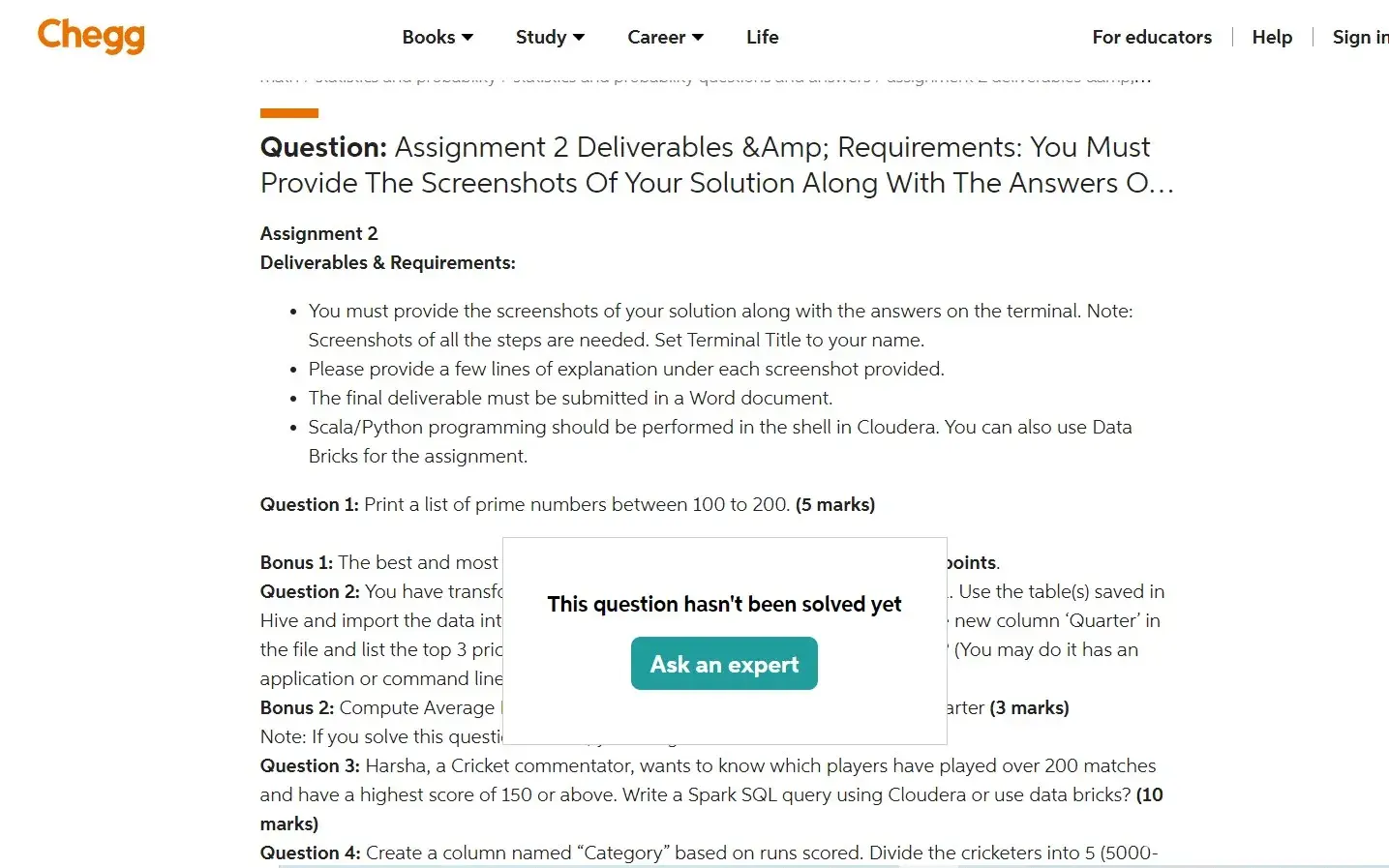 Chegg Homework tutoring