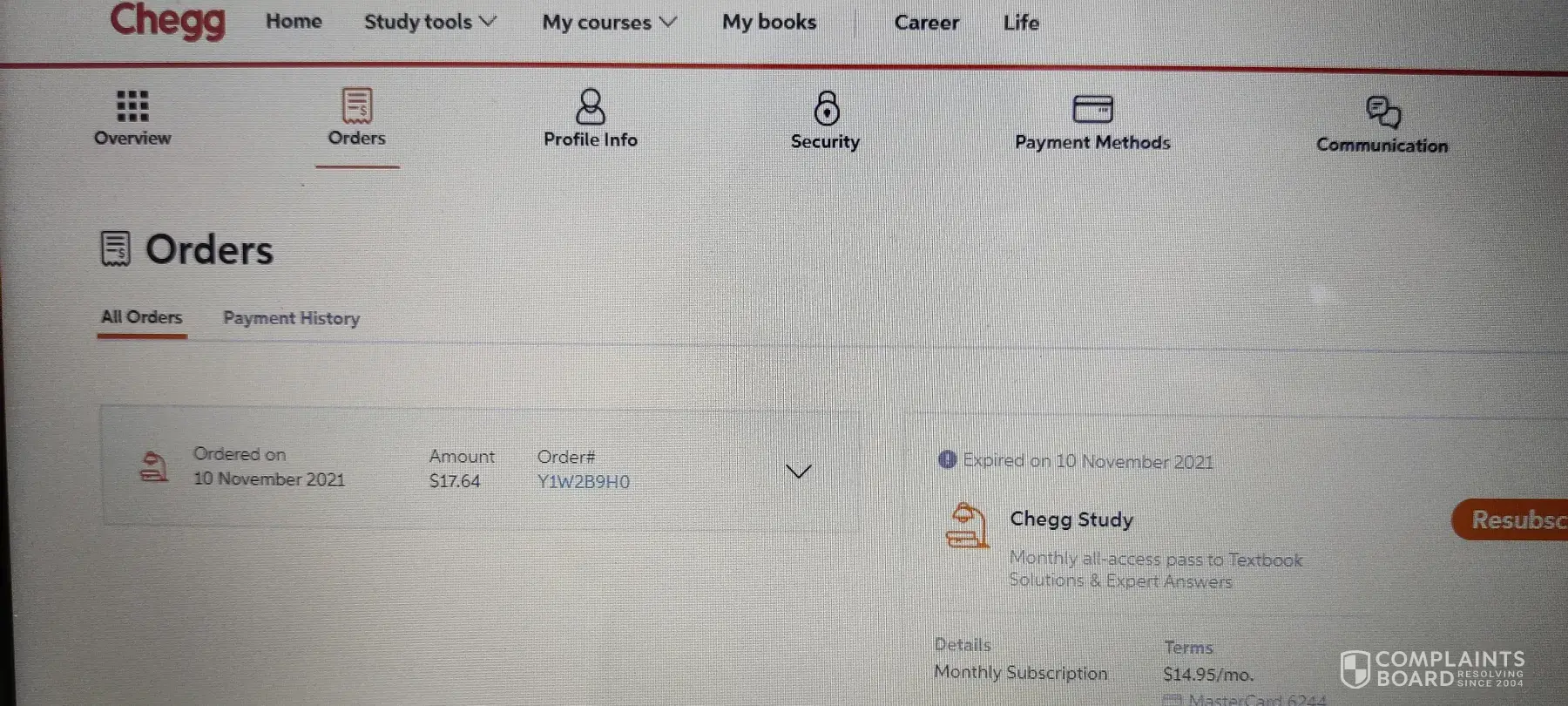 CHEGG ORDER [protected] CA Date 10/16/21 2 [protected] 3 5942 Card 1052/Recurring Withdrawal Debit Card
