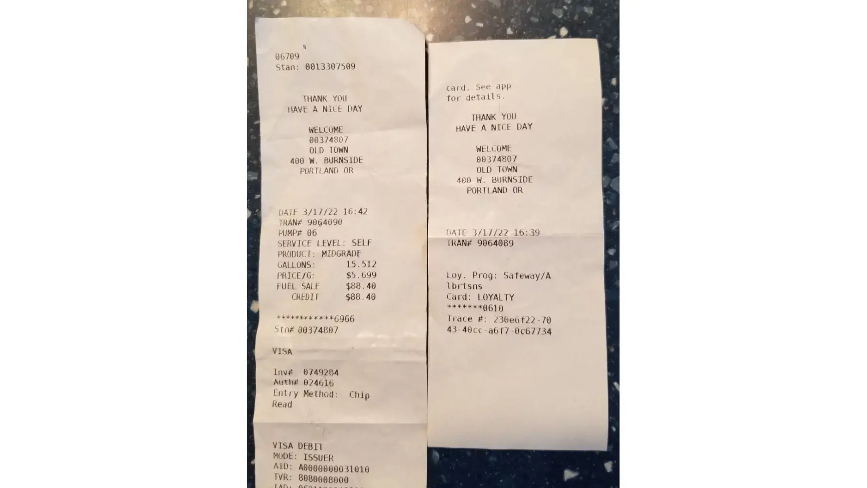 On March 17, 2022, my wife and I traveled to Portland, Oregon, from La Grande, Oregon, where we live. We were in the downtown area of Portland and checked our GPS for the closest Chevron station which is our gas station preference. When we arrived at the Old Town Chevron, at 400 W. Burnside, Portland, Oregon, we noticed that the gas prices were higher than our area, but having 3 Safeway gas rewards points, we intended to use them to offset the higher priced gas.