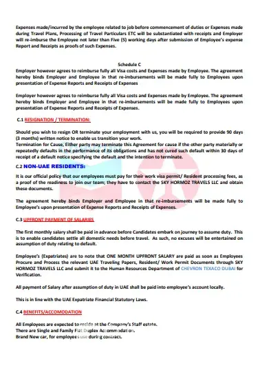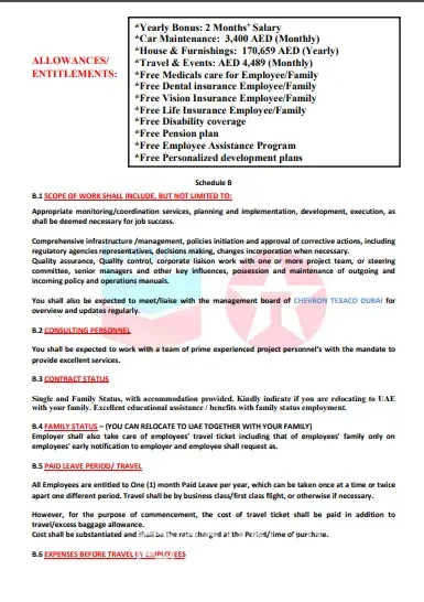 I was approached by Wesley Donald from Chevron Texaco Dubai, confirming my job application as a Quantity Surveyor in Dubai.There was a contract given to me asking me to join them in dubai by 28th April 2022.