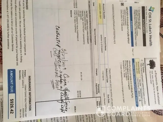 I have contacted and spoke with my insurance, Cigna-HealthSpring, and specially with ChI St. Luke's Memorial Health Center (4 separate times) of Livingston and written two (2) letters regarding where I accidentially paid for my preventive care services performed at the CHI St. Luke's Memorial Health Center in Livingston. Cigna HealthSpring say I do not owe...