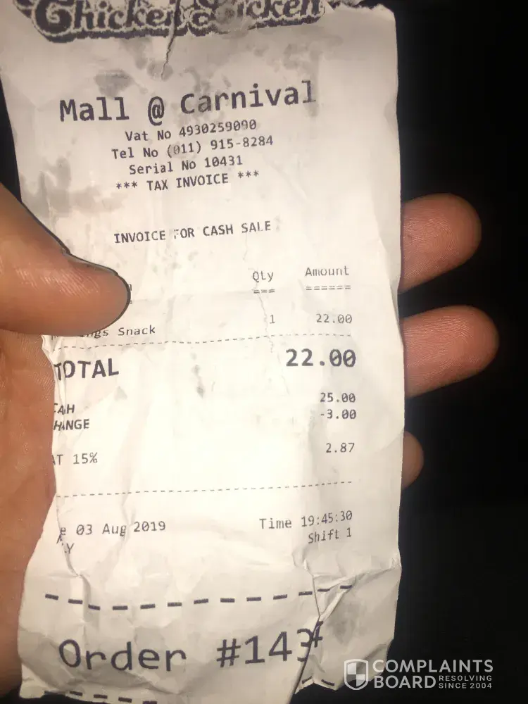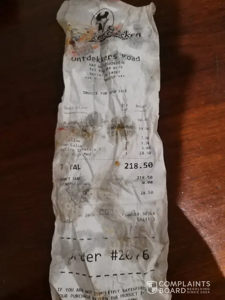 How can you sell things like this to the public, you are ripping us off, this is an ongoing problem .This is a total disgrace for a Franchisee like Chicken Licken to allow for this type of standard!
