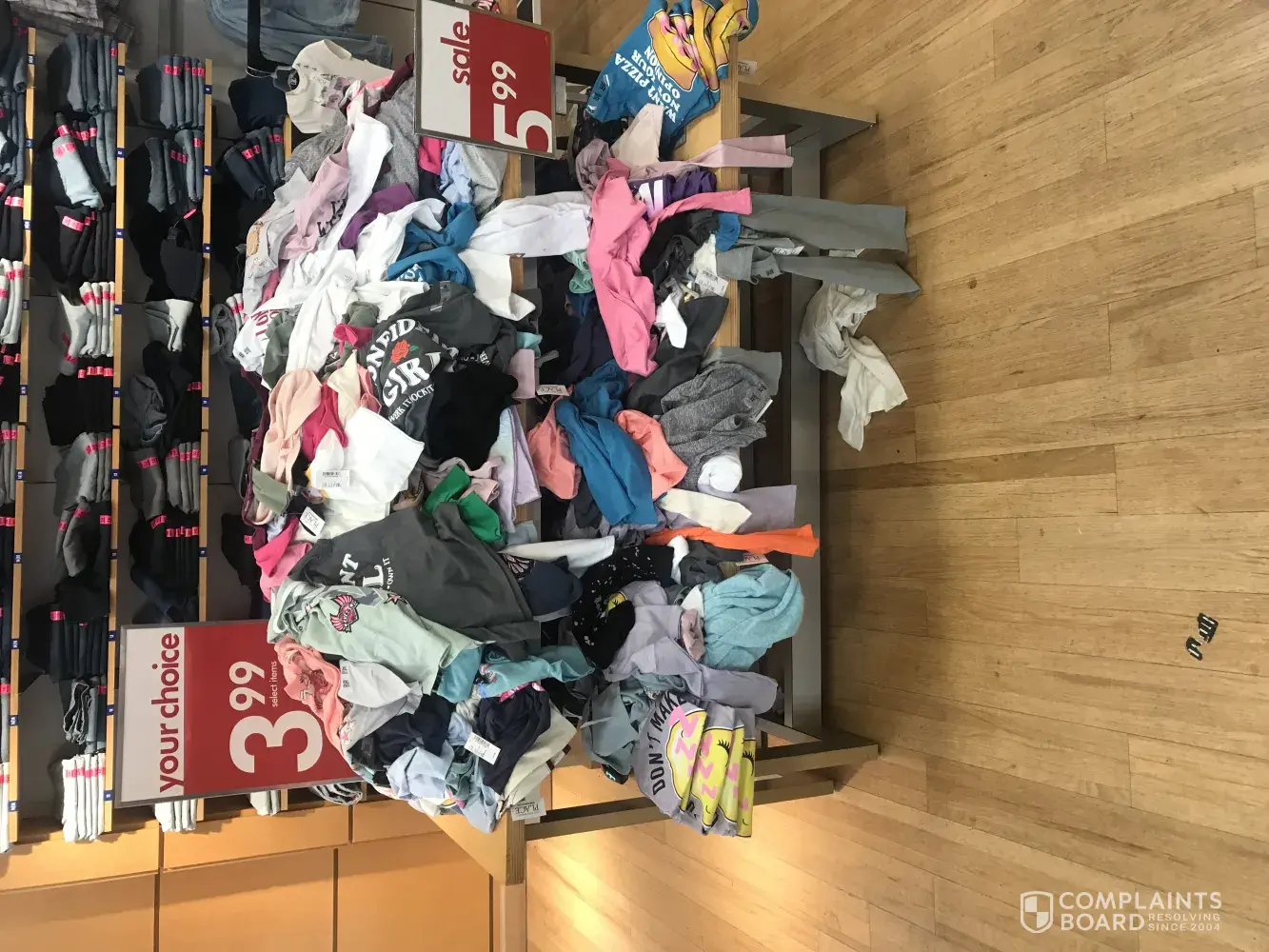 So I walked into the children's place at the mall of NH on 9/5/18 and it's like 1:30pm I'm with my husband and it was a really slow day at the mall as the kids are back to school now so there was no need for us to see this section the way we saw it. Anyway we walk in and head to the graphic tees as we are looking for shirts for all of our girls to match in. When we walk and see a massive pile of unorganized clothes! I was livid as the girl who was working was doing absolutely nothing but sitting on her phone and this mess wasn't being taking care of and I needed shirts. I was so frustrated I walked away and she didn't even consider looking my way the time I was in the store to see if she can help me with something!