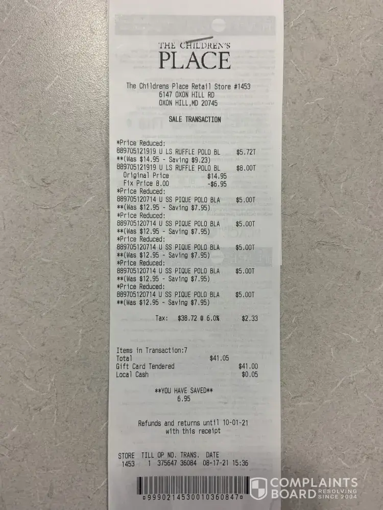7/21/2021 Today I went into my local Children's Place store in Brentwood, CA. I had 3 pairs of unworn uniform pants with the tags still on from the previous school year. I unfortunately no longer had my receipt but did purchase the items on my Children's Place credit card. When I arrived to the store I was told by the employee that I could exchange the...