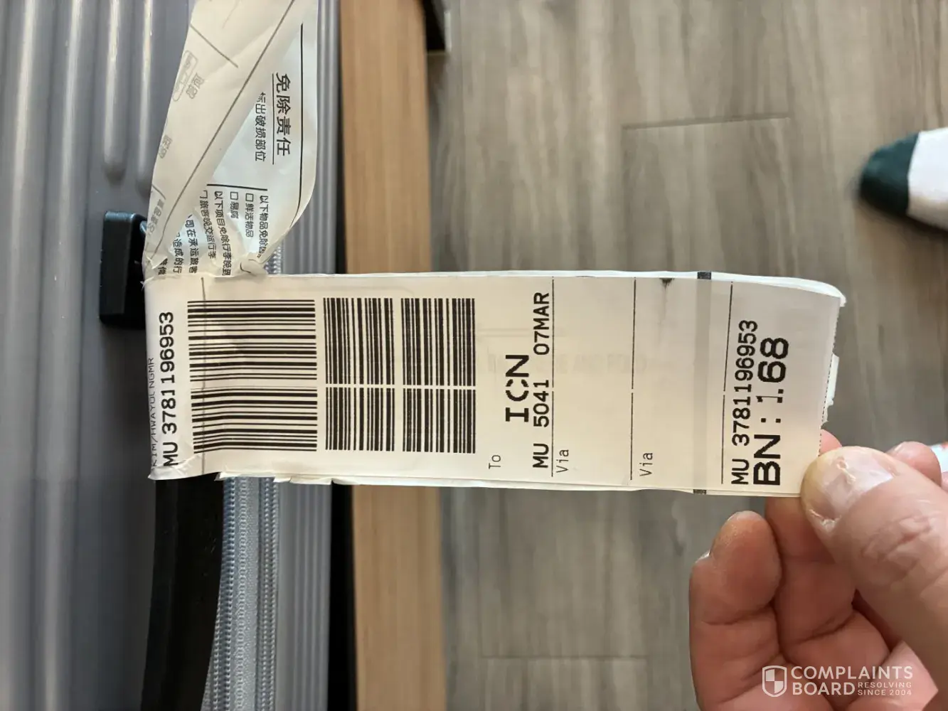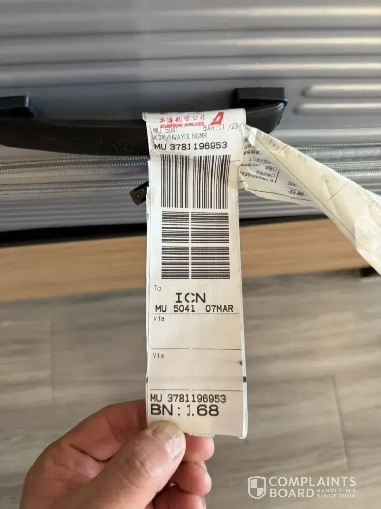 China Eastern Airlines Corporation Damaged baggage claim – Flight MU5041 (07 Mar)