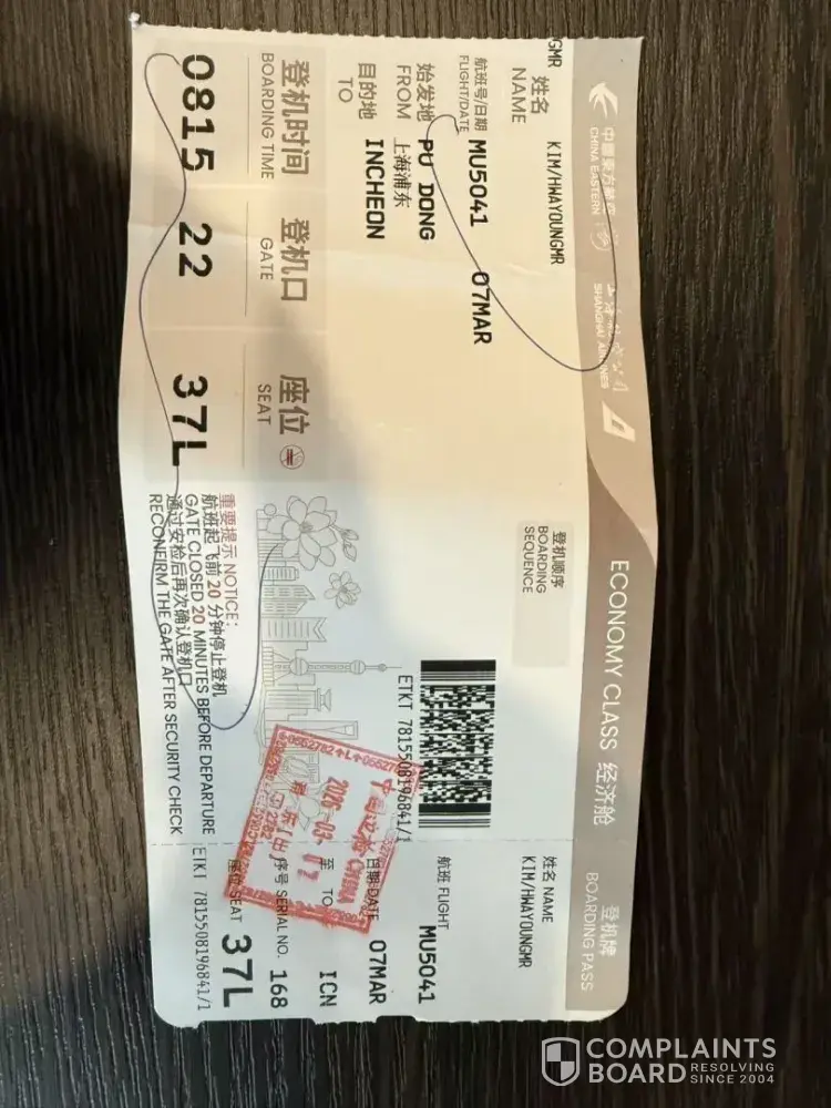 👉  Submit a complaint about China Eastern Airlines Corporation