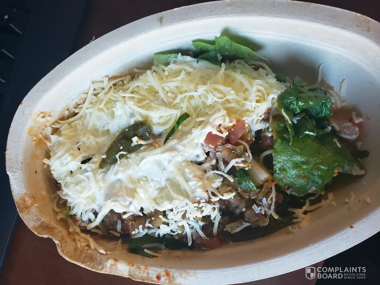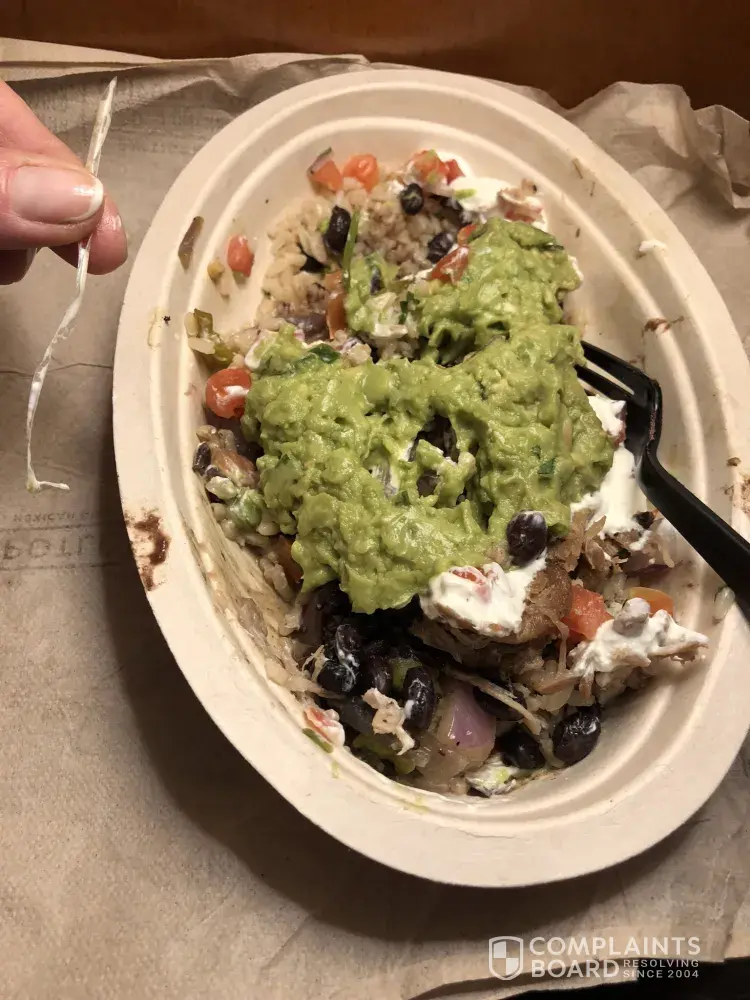 Chipotle Mexican Grill I am complaining about my chorizo togo bowl