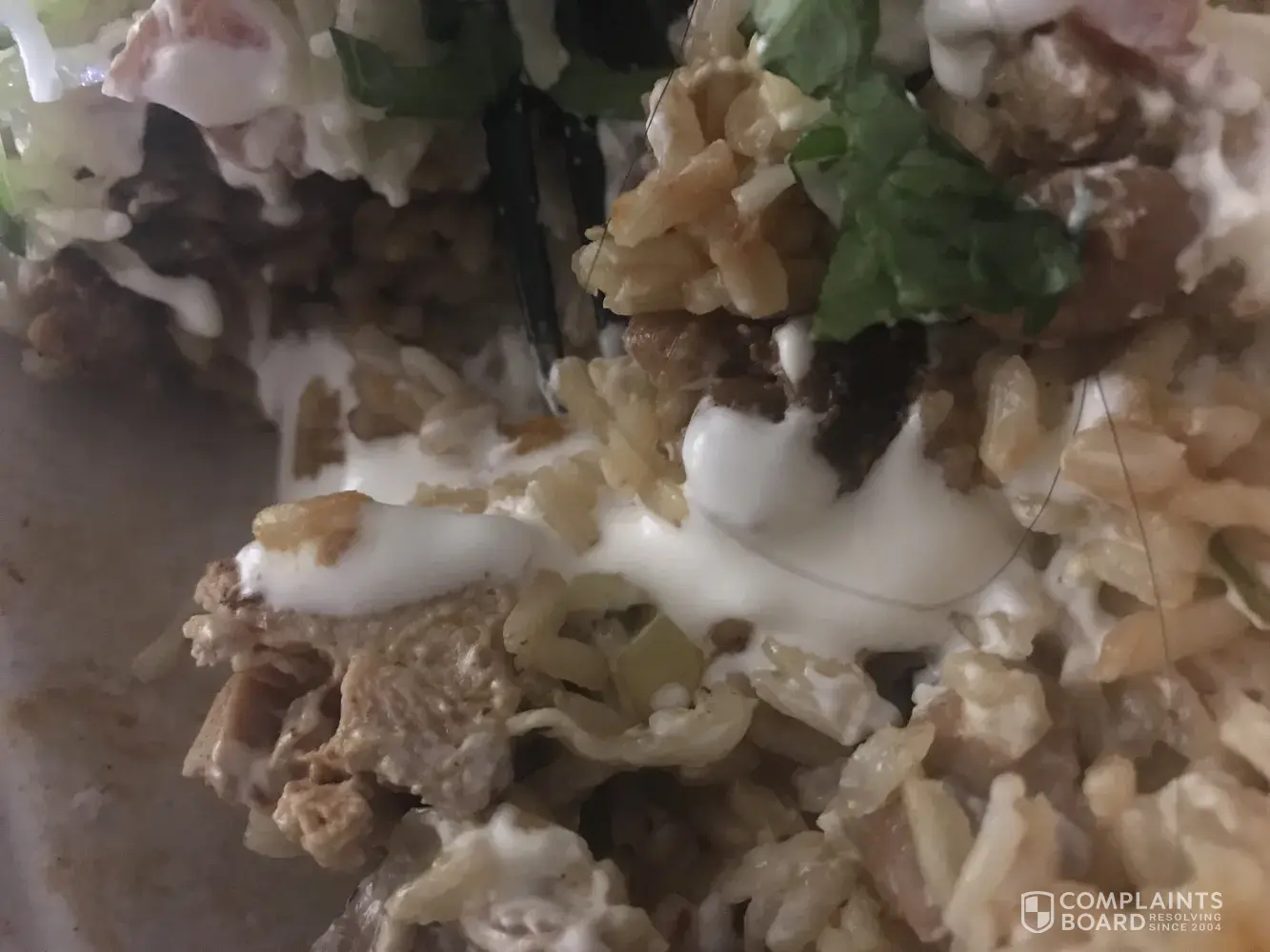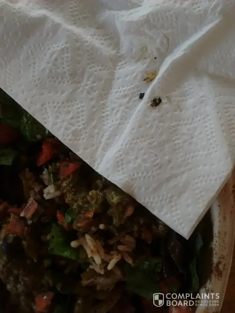product service I am complaining about my food.