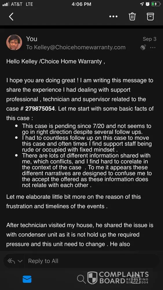 I have been calling since of June to have my AC unit repaired. It took 3 -4 weeks to get someone out here then Choice didn't want to cover the work. From June to the end of July We finally get the system repaired but not what the technician said should have happened because he said you (Choice) would only cover replacing parts. I had to come out of pocket with over $2600 dollars and 2 weeks later TODAY my system is out again. I was assigned a case manager who sounded like he was 12 years old on the phone who does not return calls or emails. Is this how you handle paying customers. This is ridiculous and your case manager Marc Ruehle should be looking for a new job. I need my system fixed ASAP.
