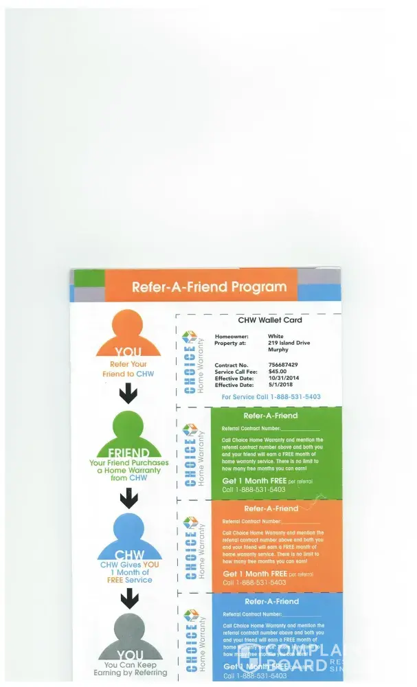 Customer service is horrible, reps are trained to minimize cost to Choice by refusing to cover repairs.